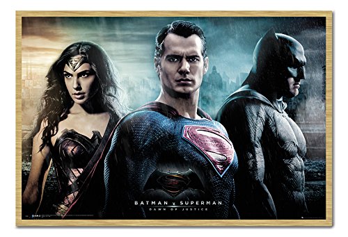 -. Title : Batman V Superman Dawn Of Justice Poster Magnetic Notice Board Beech Framed - 96.5 x 66 cms (Approx 38 x 26 inches)