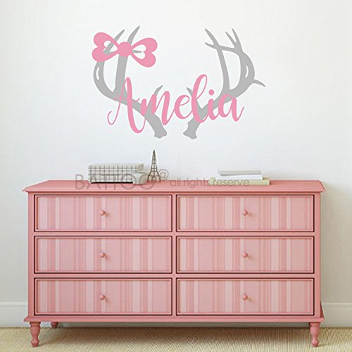 -. Title : BATTOO Personalized Name Wall Decal- Deer Horns Decals with Bowknot Girls Rustic Nursery Antler Vinyl Decal Boho Style- Hunting Themed Woodland Nursery Decor