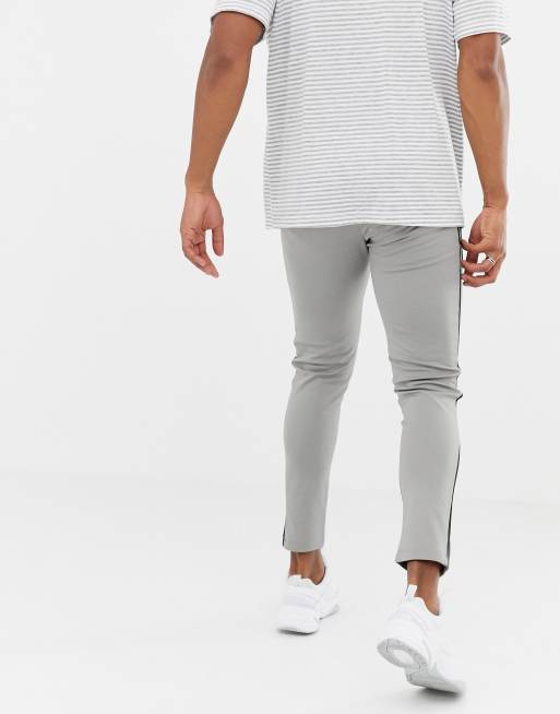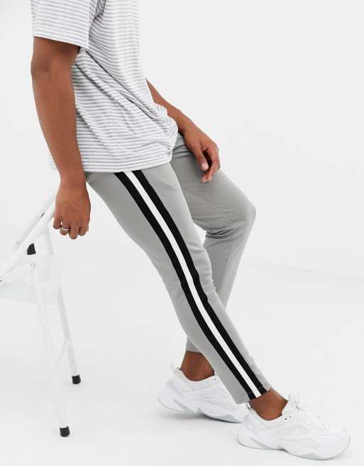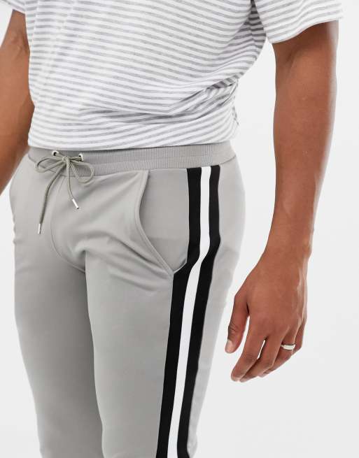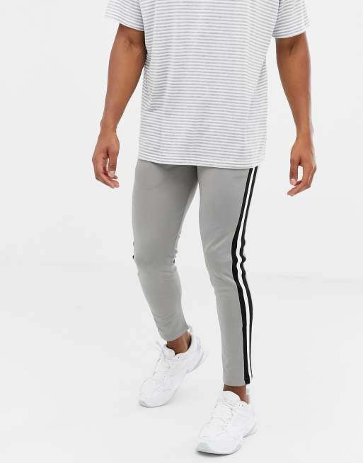 ASOS DESIGN poly tricot super skinny joggers with side stripe in grey