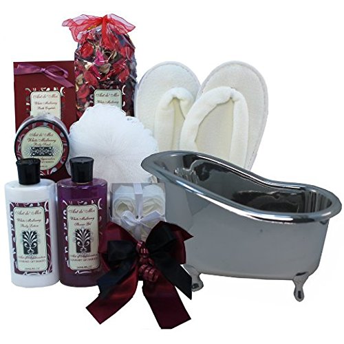 -. Title : White Mulberry Bathtub Spa Bath and Body Gift Basket Set