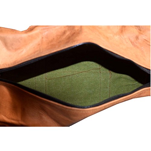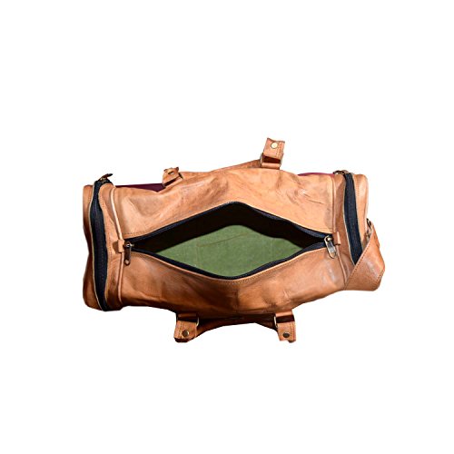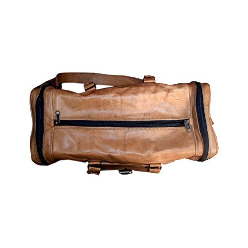 -. Feature : Dimensions (LxWxH):17 x 9 x 9 Inch Or 42 x 16 x 20 in Cm. 1 main internal compartment and 1 front Buckle Closure & 2 Side Zip Closure external pockets. / Antique sophisticated well crafted hand messenger bag prepared in such a manner that provide refined details throughout design of bag. In crafting of the product highest quality genuine leather, stitching, zippers, canvas, brass fittings and bolts are used to carefully construct designer leather hand or travel bag case. / Unique & Fashionable genuine Leather that has a high gloss finish, premium solid/plain pattern, designer look travel bag, adjustable shoulder strap with handles helps in ease to strap out at the shoulder when you're in motion, along with adjustment for a comfortable fit. Handy storage space to travel-friendly sleeve. Enough space and pockets to store your accessories such as mobile, battery, charger, memory cards, cables, adapter, clothing accessories etc. / This duffel bag can be use as a messenger bag for men & women, leather bags, backpack, travel bag, leather cross body bag, sling bag, business leather bag, office bag, bag etc. Also use as a perfect gift to yourself or to your loved one as it is designed in stylish way and decorated by a wide range of techniques. / Naturally (Using Vegetable Oil) tanned Fair Trade goatskin produced by small family-run businesses.This vintage, hand-finished pure leather shoulder strap rectangular duffel bag is perfect for use as an everyday handbag, festival bag, weekend bag, Gym or as a party bag.