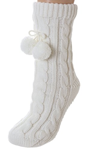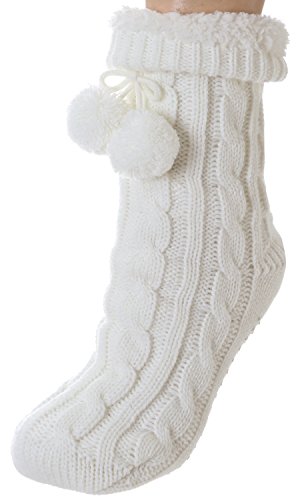 -. Feature : 7" Deer Snowflake Slipper Sock / Brushed Acrylic Lining / Grippers / One Size Fits Most / Ladies Indoor Slippers