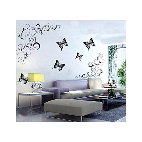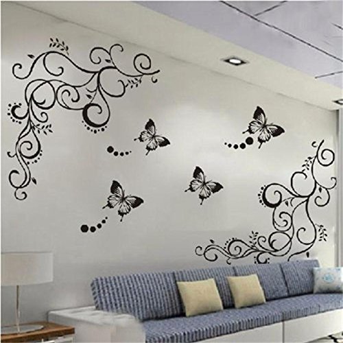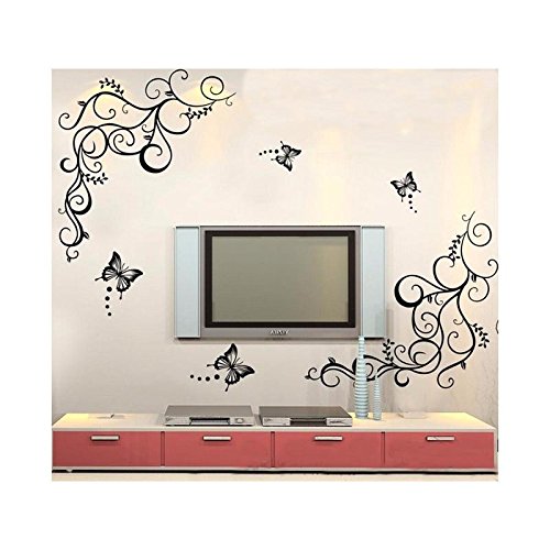 Dragon Honor Black Flowers Vine And Beautiful Butterfly Mural Wall Sticker Corner Decals For Living Room Home Decor