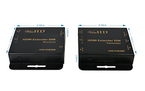 ViewHD Advanced Low Profile HDMI Extender over 50M Single Ethernet Cable with Local Loop | IR Extender | Power Over Ethernet "POE" Features | Model: VHD-POE50M