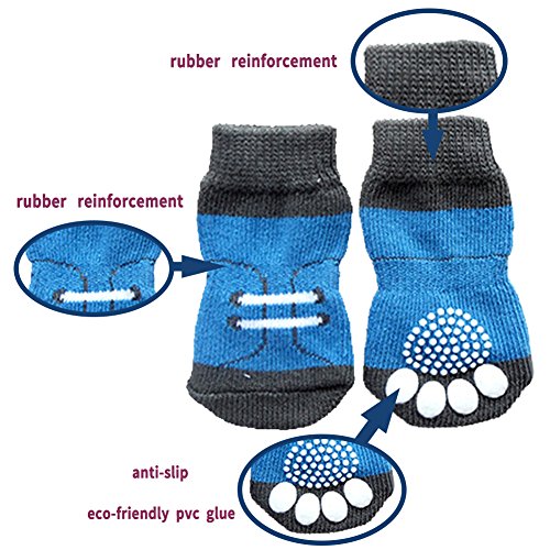 -. Binding : Misc. -. Brand : LOGUIDE -. Color : blue -. Feature : Made from the highest quality cotton,these non-slip dog socks are extremely comfortable so they'll love to wear them! / These socks are made using the latest anti-slip grip technology that will aid your dog when walking on any type of flooring, making these the ideal dog socks for hardwood floors! / These dog socks for small to large dogs are reinforced with strong eco-friendly glued grips to make sure that each sock will last for a long time and provide the maximum comfort for your dog. / This set breathable nonslip dog socks is extremely easy to put on and take off.The top layer is tight enough to stay in place during moments of high activity, but easy enough to take off when stretched by the human hand. / This set non-slip dog socks are lightweight and practical for dogs in daily basic wear making these the best dog socks for hardwood floors and for the winter time.These dog socks are also great to add protection in healing infections and control scratching and itching an infection after receiving treatment. -. Label : HENGZHAN -. Manufacturer : HENGZHAN -. Model : LO-WZ-125 -. MPN : LO-WZ-125 -. PackageQuantity : 1 -. PartNumber : LO-WZ-125 -. ProductGroup : Pet Products -. ProductTypeName : PET_SUPPLIES -. Publisher : HENGZHAN -. Size : M -. Studio : HENGZHAN -. Title : Anti Slip Dog Socks Traction Control for Indoor Wear Paw Protection 8 PCS