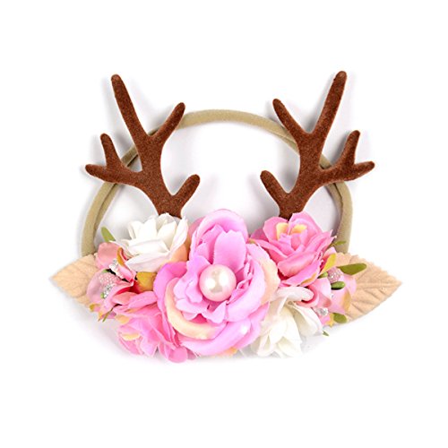 - Color: Light Pink. - Material: Fabric. - Size: 30cm / 11.8inch(stretchable). - This is a very fashion headband for baby girl. - Suitable for Christmas, Halloween, birthday party, cosplay or daily life. - Antler horn and flower design, making your princess more charming and attractive. - Your girl will be the spotlight of the party with this pretty headband. Package Including 1 x Baby Kids Girls Flowers Reindeer Deer Antlers Hair Band Christmas Party Cosplay Headband (Light Pink) 0
