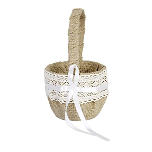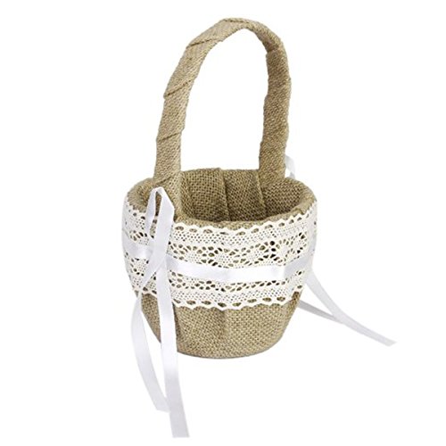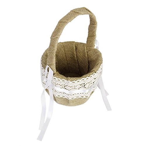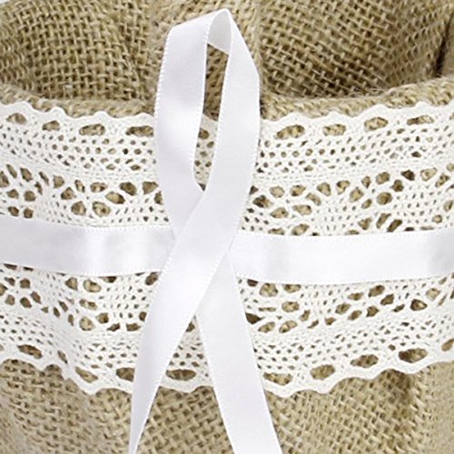 Tinksky Burlap Flower Basket for Wedding Ceremony Party - Delicate Lace Ribbon Decorated