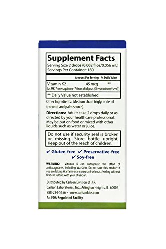 -. Title : Carlson Super Daily K2, 45 mcg Vitamin K2, 360 Liquid Drops