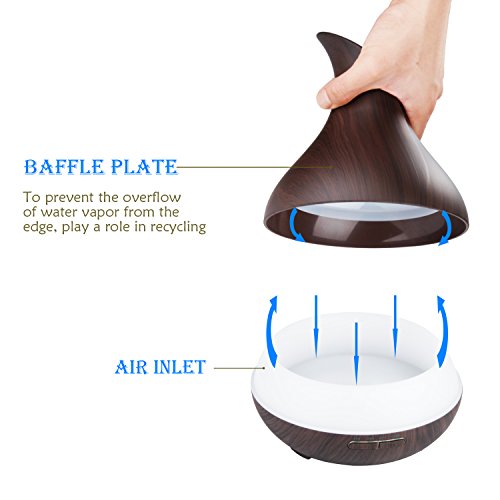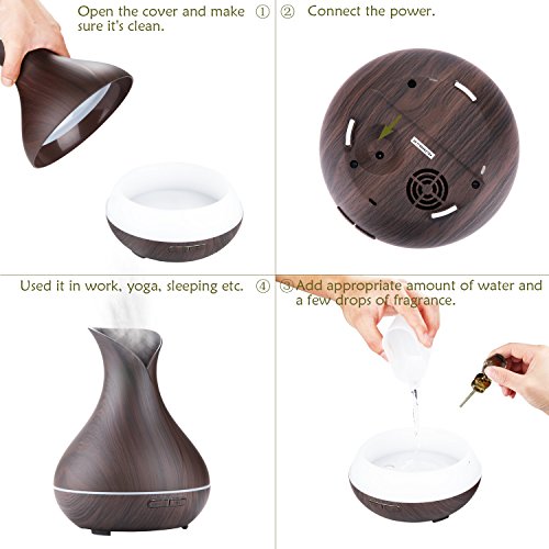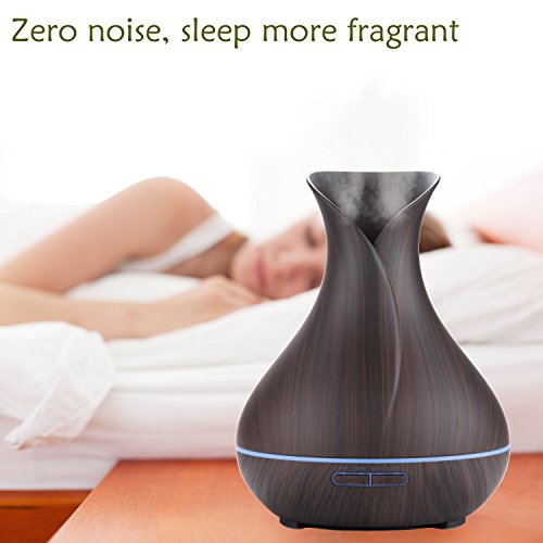 Classic Design and Super Quiet: Sleek tulip style with wood grain finish meets modern function in this beautiful,practical diffuser. Designed to be a perfect decorative piece that fits in with any decor.With the adopted ultrasonic technology, noise level is less than 25 db. This aroma diffuser is extremely quiet while working and won't bring any disturbance to you . Never worry about disturbance, only peaceful sleep will come with it.