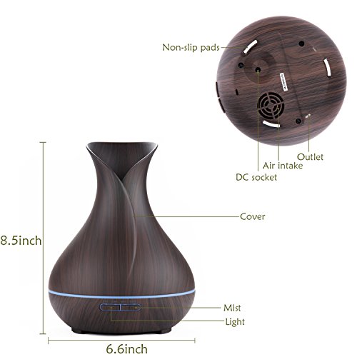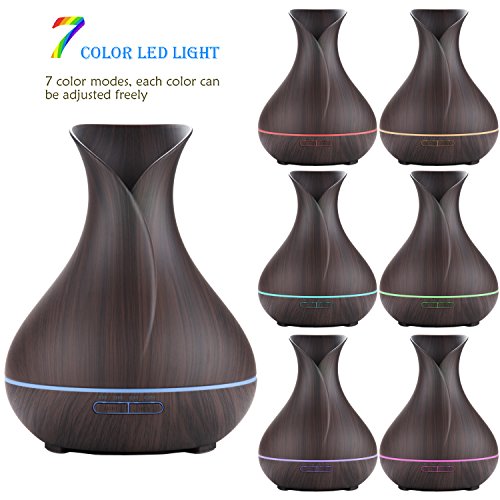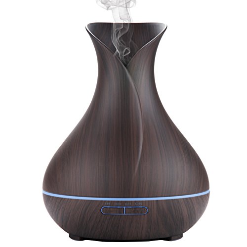 Aroma Essential Oil Diffuser, PEMOTech 400ml Ultrasonic Cool Mist Humidifier Wood Grain with 7 Colorful Lights, Waterless Auto Off And 4 Timer Function for Home, Office, Yoga, Spa(Dark Brown)