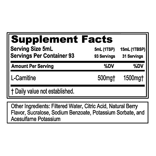 500mg of Pure L-Carnitine Liquid (Serving Size 5 mL)