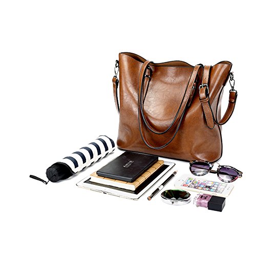 ☆ SUPER DURABLE MATERIAL 100% New brand and high quality imported oil wax leather with durable silver hardware. Touch feel very soft and smooth.interior polyester lining.With zipper opening cleasure.