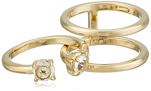 Two-piece stacking ring set featuring gladiator ring and cuff with prong-set crystal ends
