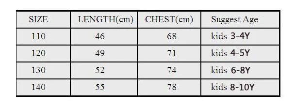 110 (3-4 Y) 120 (4-5 Y) 130 (6-8Y)140 (8-10Y)For 3-10Ykids