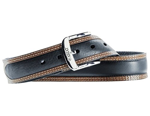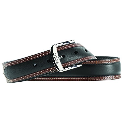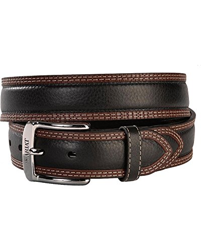 Studio : Ariat Men's Accessories Publisher : Ariat Men's Accessories Binding : Apparel Product Description This ariat belt by m and f western products features a 2-tone black and tan strap, with a chrome buckle. This belt also comes with reinforced belt holes for a long lasting belt. Available in sizes 32-46. 0