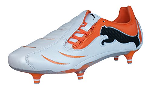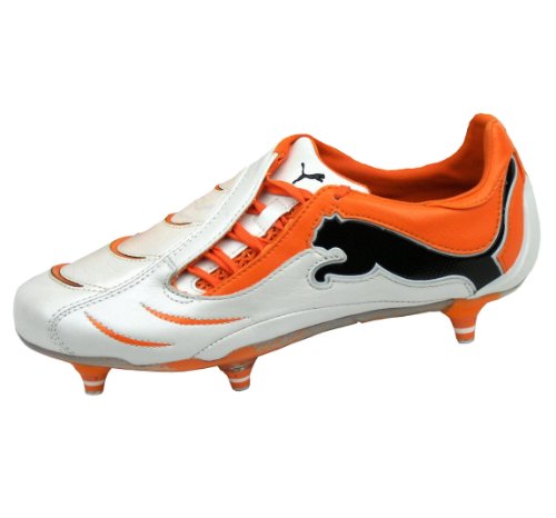 Binding : Apparel Product Description Puma PowerCat 1.10 SG Mens Leather Football Boots / Cleats - When your game is all about power and speed, then you need footwear to meet these demands. The Puma Powercat 1.10 Powercat 1.10 SG Football Boots Made By Puma. UPPER: Kangaroo leather upper with Spring Tech foam for explosive shooting. The material mix on the upper - using a combination of soft thin kangaroo leather in the vamp with synthetic microfiber around the heel area - keeps weight down to boost control and touch. PowerGil Technology enhances kicking power by putting extra power behind the ball as it is released TPU-injected external heel counter for stability. INSOLE: EVA insole for comfort. OUTSOLE: Lightweight TPU-injected outsole with pointed stud configuration For use on soft surfaces. Boot bag included. 0