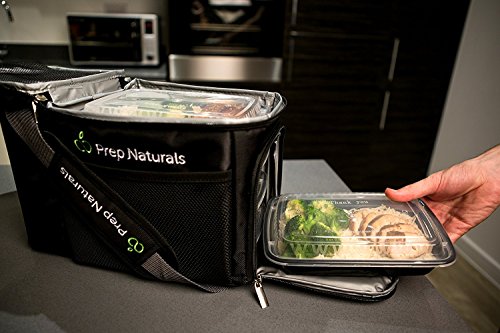 [Premium] Meal Prep Bag + Travel Bag with 10 Bonus Food Containers (28oz) and Cutlery Sets | Insulated Lunch Box Cooler for Gym and Meal Management System by Prep Naturals