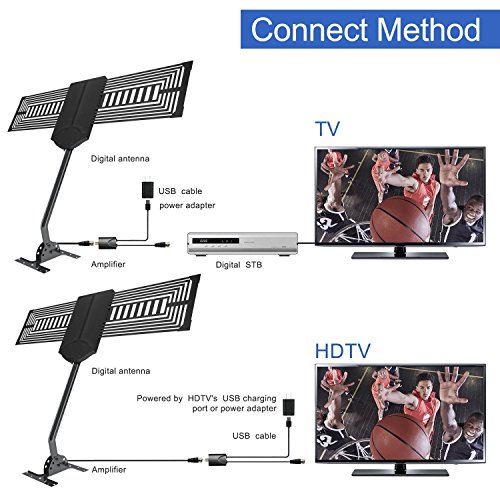 Specification: Working Frequency: VHF47~240MHz, UHF 470~862MHz Reception Range: 150 Miles Receiving Range: VHF/UHF/FM Antenna Gain: 32dB Max (with Amplifier) Impedance: 75Ω Noise figure: ≤3dB Power Supply: USB Adapter Coax Cable Length: 33ft 0