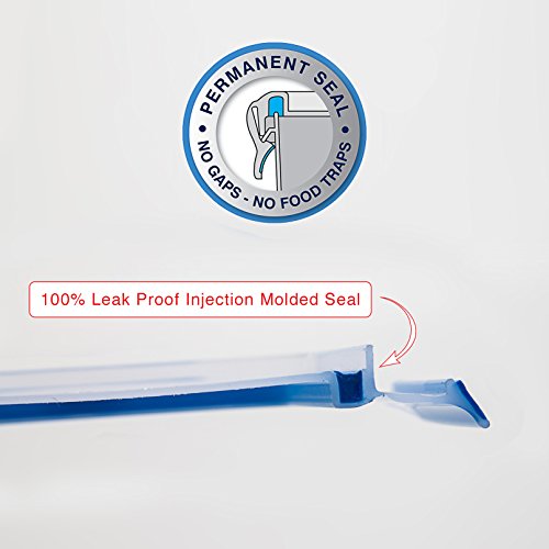 Revolutionary patented, injection molded seal has no gaps or food traps, is 100% leak-proof and keeps food fresh 2 times longer