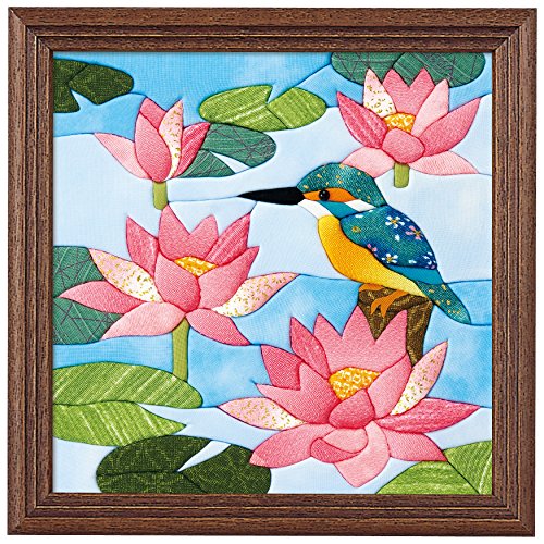 -. Title : さくらほりきり 手作りキット きめこみ 蓮池のカワセミ 額付 内寸8インチ