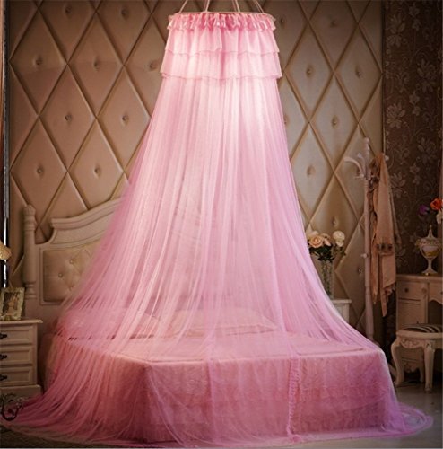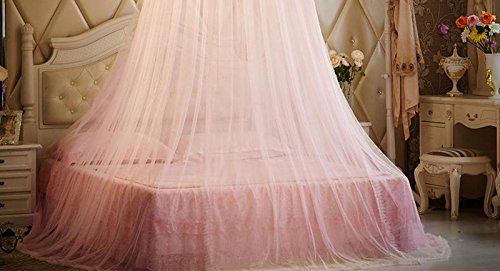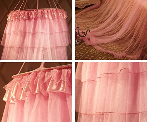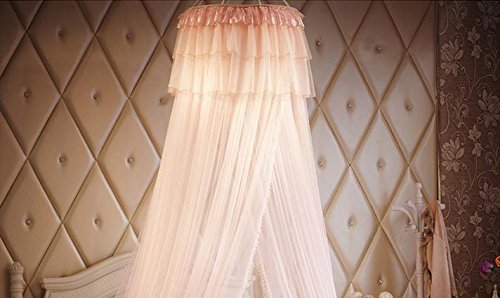 Round Hoop Decorative Lace Princess Crib Twin Full Queen Size Bed Canopy Mosquito Net Yellow (Pink)