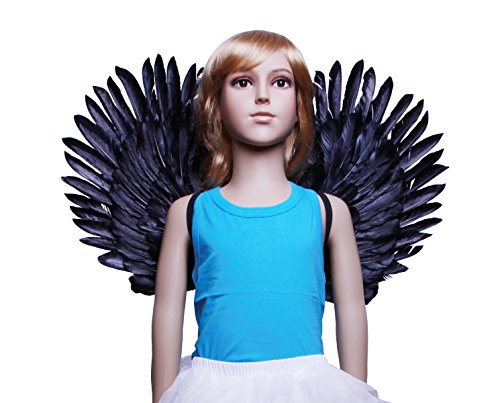 -. Feature : Angel of Comfort, M, Dyed Black, Duo Use (can be worn pointing up or down) / Approx. Wingspan (open flat, left to right): 24 inches (61 cm) / Approx. Wing height (open flat, top to bottom): 15 inches (38 cm) / Natural duck/goose feather & marabou, hand made / Fits children 3-8 yrs old, unisex, (also available in white, see ASIN/ISBN# B001G5N8ZC)