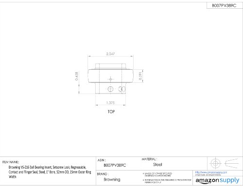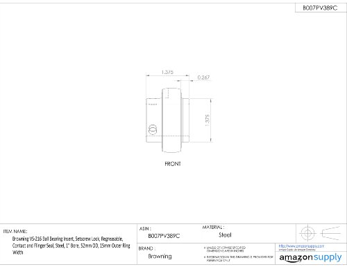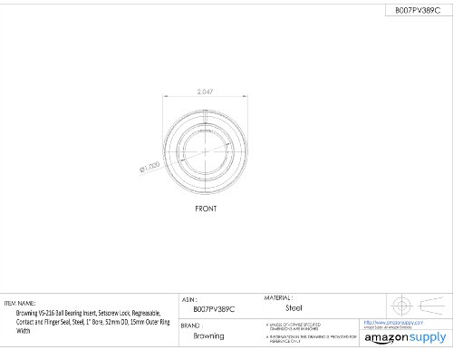 Browning VS-216 Ball Bearing Insert, Setscrew Lock, Regreasable, Contact and Flinger Seal, Steel, 1" Bore, 52mm OD, 15mm Outer Ring Width