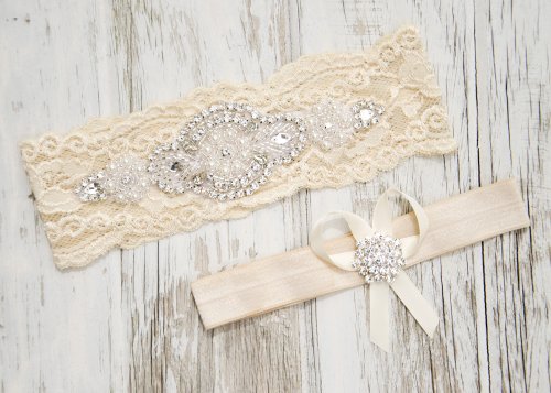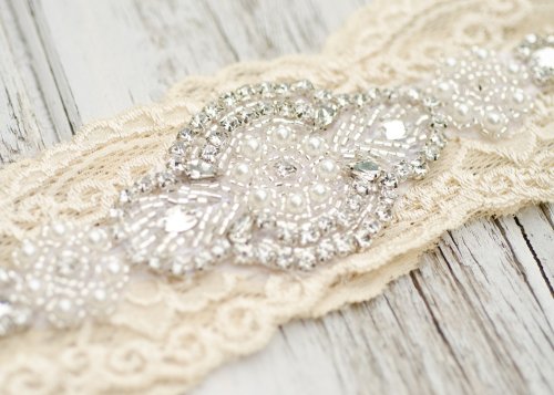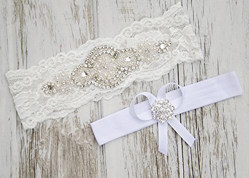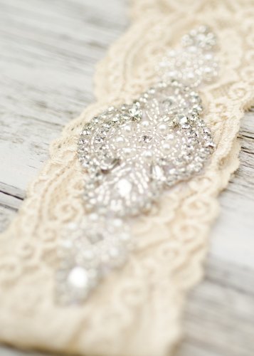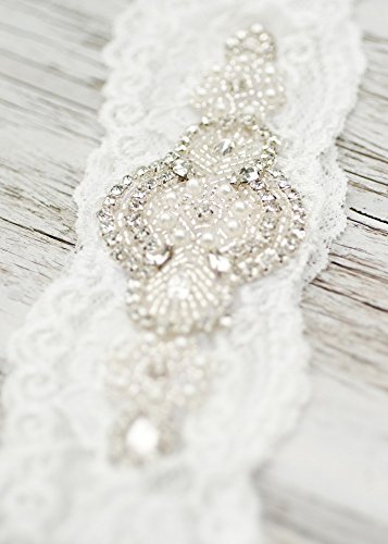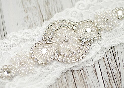 Keepsake Garter - The star of this bridal set is a stunning keepsake garter that features a hand-beaded applique embellished with a dazzling assortment of pearls and rhinestone crystals. Crafted with soft stretch lace, the garter is not only gorgeous, it's also comfortable to wear during the wedding ceremony and through the reception.