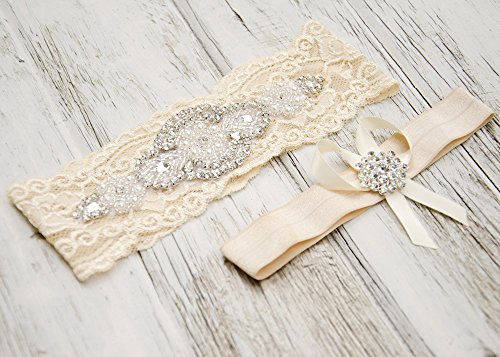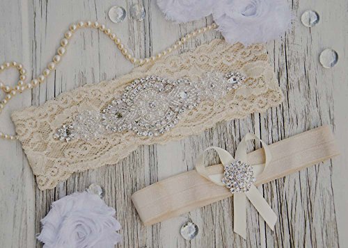 Wedding Bridal Garter Belt Set White Ivory Lace Heirloom Rhinestones Pearl Women Shower Gift Beach Vintage Elegant Tradition