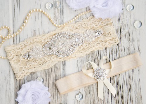 Toss Garter - The tossing of the garter by the bride's spouse is a long-standing tradition. This unique set includes a toss garter that beautifully matches the vintage-inspired style of the keepsake garter with its delicate satin bow and shimmering crystals.