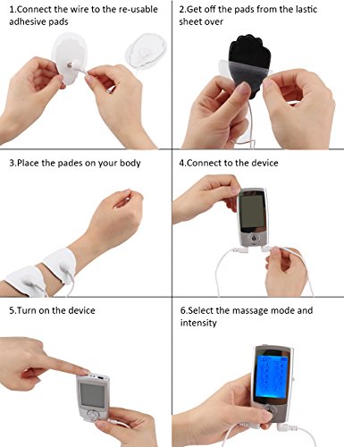 - POCKET SIZE TENS UNIT: Portable and convenient to relax any time and anywhere! Plug the electrode lines into the unit at one end and the pads at the other end, the muscle stimulator is designed to operate as simply as a music player.