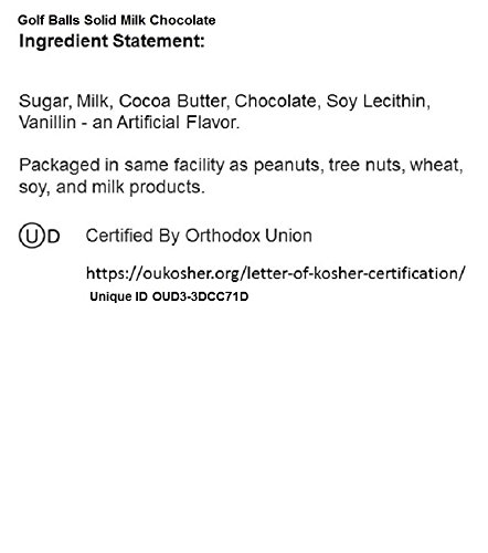 -. Feature : Golf Balls Premium Solid Milk Chocolate - 5 Lb Bag / Delicious Solid Milk Chocolate Balls Wrapped Golf Ball Foils / Piece Size: 3/4" x 3/4" x 3/4" / Approx 400 Pcs Per 5 Lb Bag / OUD Kosher. Made USA.