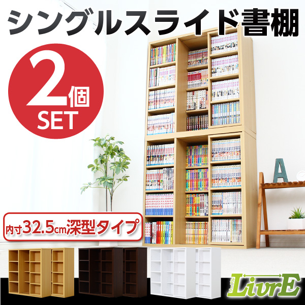 スライド書棚(2個セット)【-Livre-リーブル】(シングルスライド・深型タイプ)