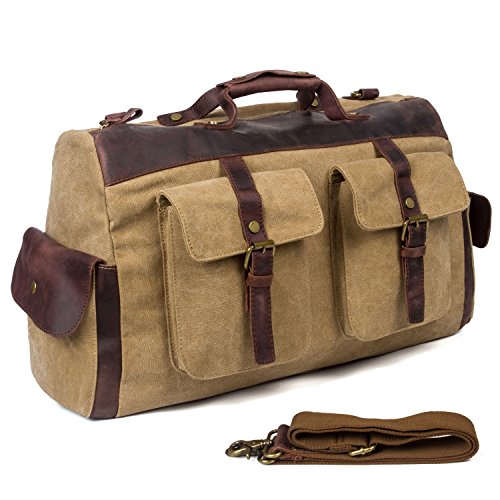 -. Title : Travel Duffels Bag 14 Inch Unisex Canvas Vintage Leather Tote Luggage Shoulder Sports Handbag