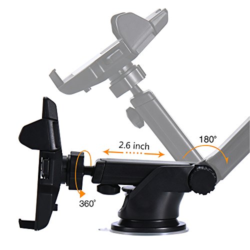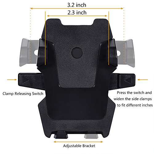【Wide Compatibility】Extendable clamp arm accommodates devices between 2.1 inches and 3.3 inches width, supporting iPhone, Samsung, HTC, Huawei, Moto and other cellphones.