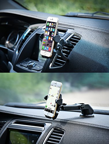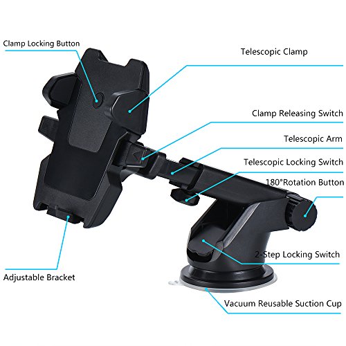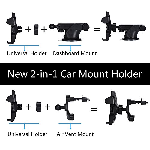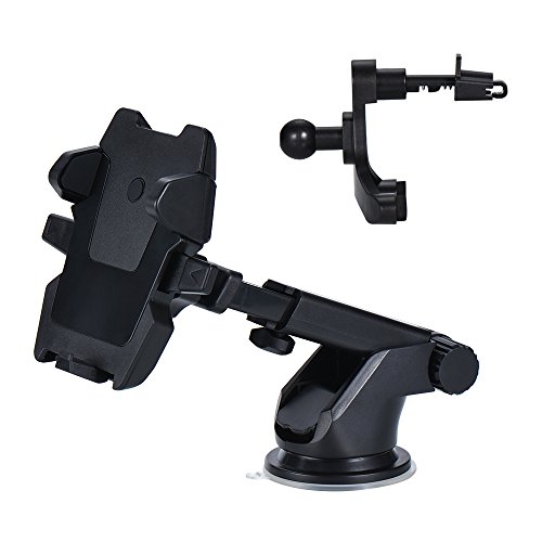 Phone Holder for Car Air Vent Windshield Dashboard 2-in-1 Car Mount Phone Holder VANZAVANZU Universal Phone Car Mount Holder Cradle for iPhone 7/7 Plus/6/6s Plus, SAMSUNG Galaxy, HUAWEI (Black 1)