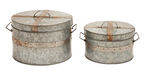 Plutus Brands Traditional Round Galvanized Metal Box, Set of 2
