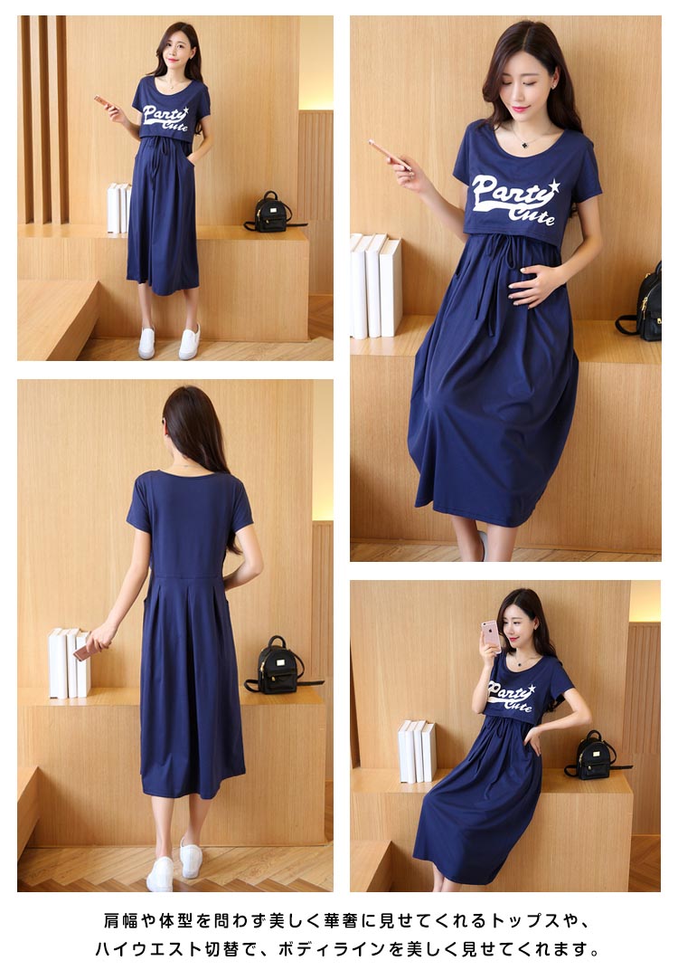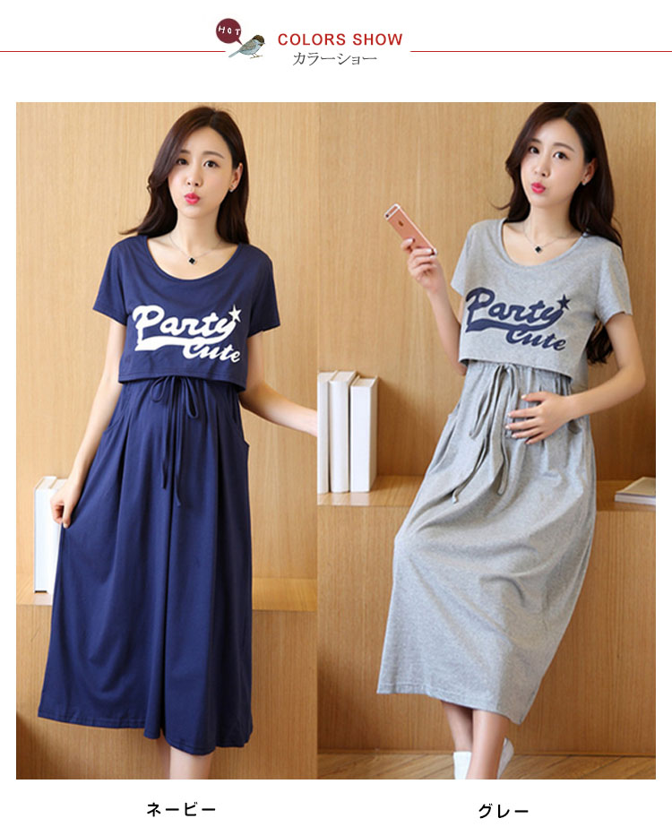 | セットアップ風の授乳服兼用マタニティワンピース。ふくらはぎまでかかる長めの丈も大人っぽさをプラスし、スタイリッシュです! 肩幅や体型を問わず美しく華奢に見せてくれるトップスや、ハイウエスト切替で、ボディラインを美しく見せてくれます。伸びがよく、ナチュラルな綿混素材で、取扱が簡単で、着心地の良さが抜群!デザインの中に授乳口があるので、外からは授乳服に見えず、妊娠?授乳期、卒乳後まで長くご愛用いただけます。 | |