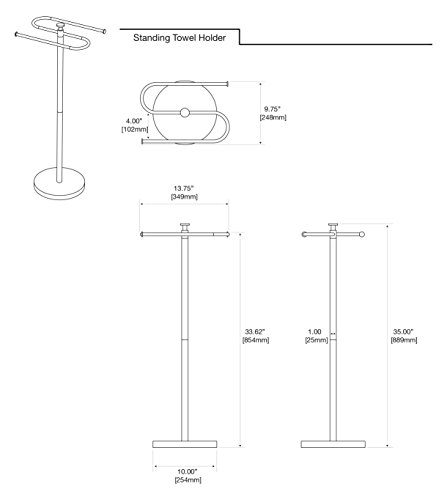 Gatco 1500 Modern Floorstanding Towel Holder, 35" H, Chrome