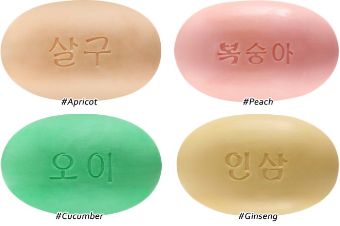 A cleansing soap bar with scent of Apricot / Cucumber / Ginseng / Peach.