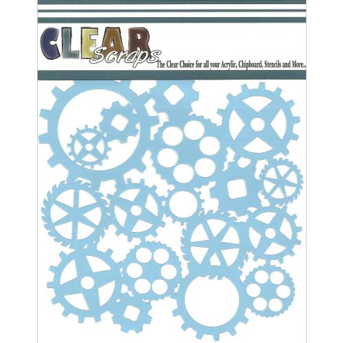 Clear Scraps Translucent Plastic Stencil use on all kinds of projects including for adding creative designs with paints, inks, chalks, misters and many other mediums to a paper project. This package contains one 6 x 6 Inch stencil. Available in gears design. Made in USA.Feature