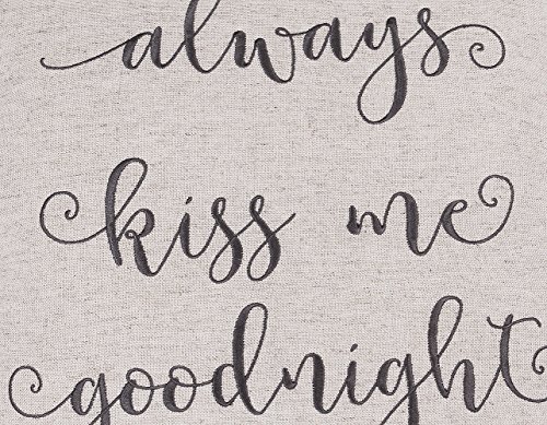 ADecor Always Kiss me goodnight Pillowcase Embroidered Pillow cover Decorative Pillow Standard Cushion Cover Gift Love Couple Wedding (18x18, Linen)
