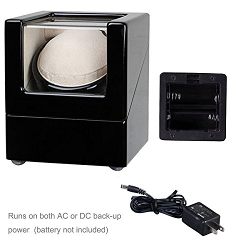 -. Feature : Powered with Japanese super slient motor no running noise. Nice looking, easy to operate. / 100% handmade and good value. The use of acrylic glass, environmental protection piano lacquer and transmission using copper fittings. One turntables with PU soft watch pilow, smooth, atmosphere and quality with high-grade. / Watch winder motor have 3 direction settings (clockwise, counter-clockwise and alternating) and multiple Turns Per Day settings. / Four Program Settings: Mode 1 : 2mins CW, rest for 6mins, repeat. Mode 2 : 2 mins CCW, rest for 6 mins, repeat. Mode 3 : 2 mins CW, rest for 6 mins, then 2 mins CCW, rest for 6 mins, repeat. Mode 4 : 5 mins CW, 5 mins CCW, repeat above for 3 hours, rest for 9 hours, repeat. / Dual power supply more reasonable. Powered by 100-240v AC Adapter(included) or 2X 1.5V Battery (not included). Dimensions: 15 * 14.5 * 16.5 CM.