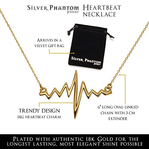 -. Binding : Jewelry -. Brand : Silver Phantom Jewelry -. Feature : SOLID STERLING SILVER - Made with the finest 925 Sterling Silver for stunning detail that lasts a lifetime / RHODIUM PLATED FINISH - Rhodium is a metal we use to keep your necklace shining bright and prevent scratches and tarnish / TRENDY DESIGN - Features EKG style heartbeat charm / CHAIN LENGTH - 16" long oval-linked chain with 3 cm extender / SATISFACTION GUARANTEED - South Street Designs, the only authorized seller of Silver Phantom Jewelry items, stands behind each item with incredible customer support and a 100% money-back guarantee! -. Label : Silver Phantom Jewelry -. Manufacturer : Silver Phantom Jewelry -. ProductGroup : Jewelry -. ProductTypeName : FASHIONOTHER -. Publisher : Silver Phantom Jewelry -. Studio : Silver Phantom Jewelry -. Title : Heartbeat Necklace by Silver Phantom Jewelry