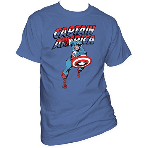 Product DescriptionA mens soft fitted 30/1 cotton tee featuring a Captain America graphic on front.0