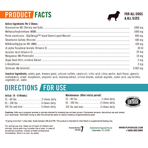 -. Title : PupGrade Joint Supplements for Dogs - Best Dog Supplement for Good Joint Care, Relieves Hip Pain in Dogs, Glucosamine, Chondroitin & MSM for Dogs, All Natural Treats, Made in USA