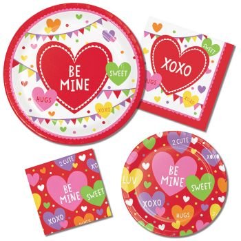 Valentine’s Day Party Supply Pack! - Valentine’s Day Design - Disposable Paper Dinnerware - 16 Guests - Includes Dinner Plates, Dessert Plates and Napkins