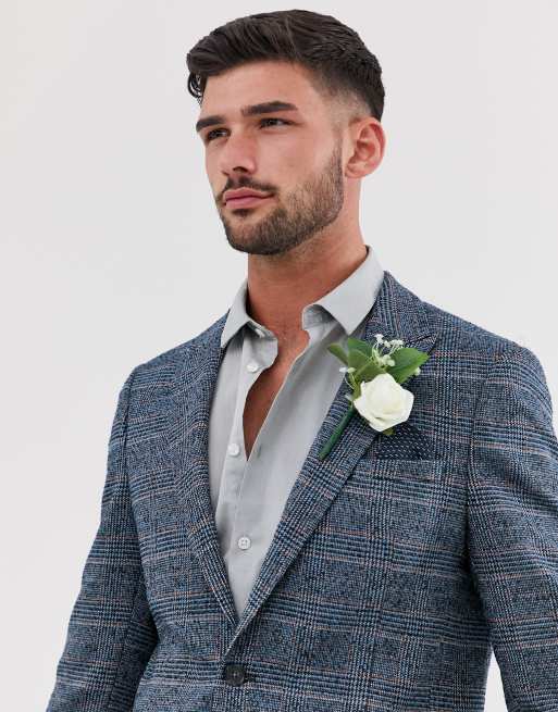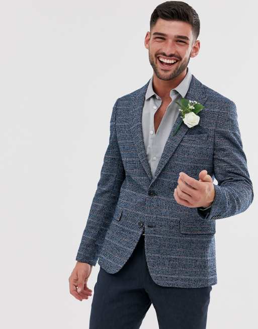 ASOS DESIGN slim crop blazer with blue check in wool mix