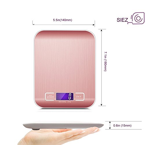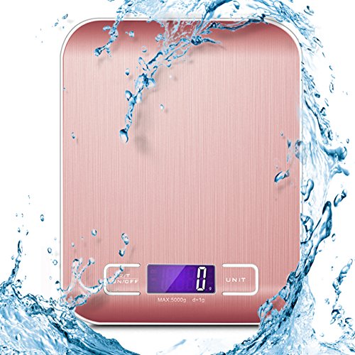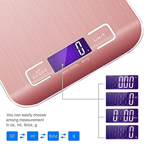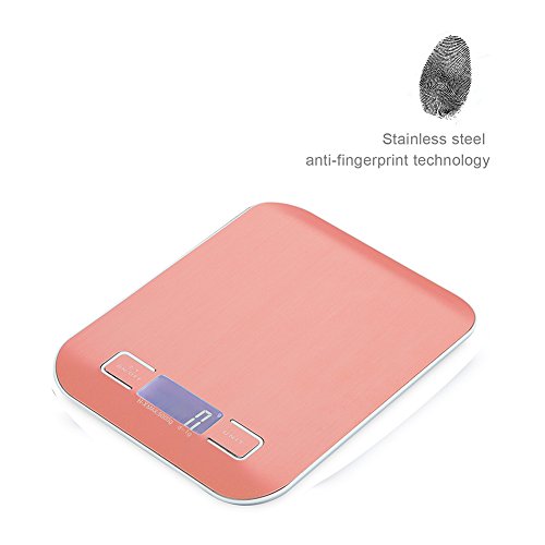 - ▲Precise Measurement- Featured with a large weighing waterproof LCD screen.11lb/5kg capacity with a division of 0.1oz/1g.Great for cooking,baking,BBQ,Jewerly▲Anti-fingerprint stainless steel with high end design adds a modern aesthetic to your kitchen while providing a durable, large and easy-to-clean measuring surface.