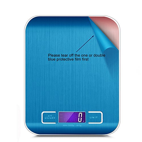 - ▲Stylish Stainless Steel Design - Minimalistic and elegant silver design makes this food scale stylish. Anti-fingerprint design makes it easy to clean and maintain. PLEASE NOTE that you need to tear off the double blue protective film first.